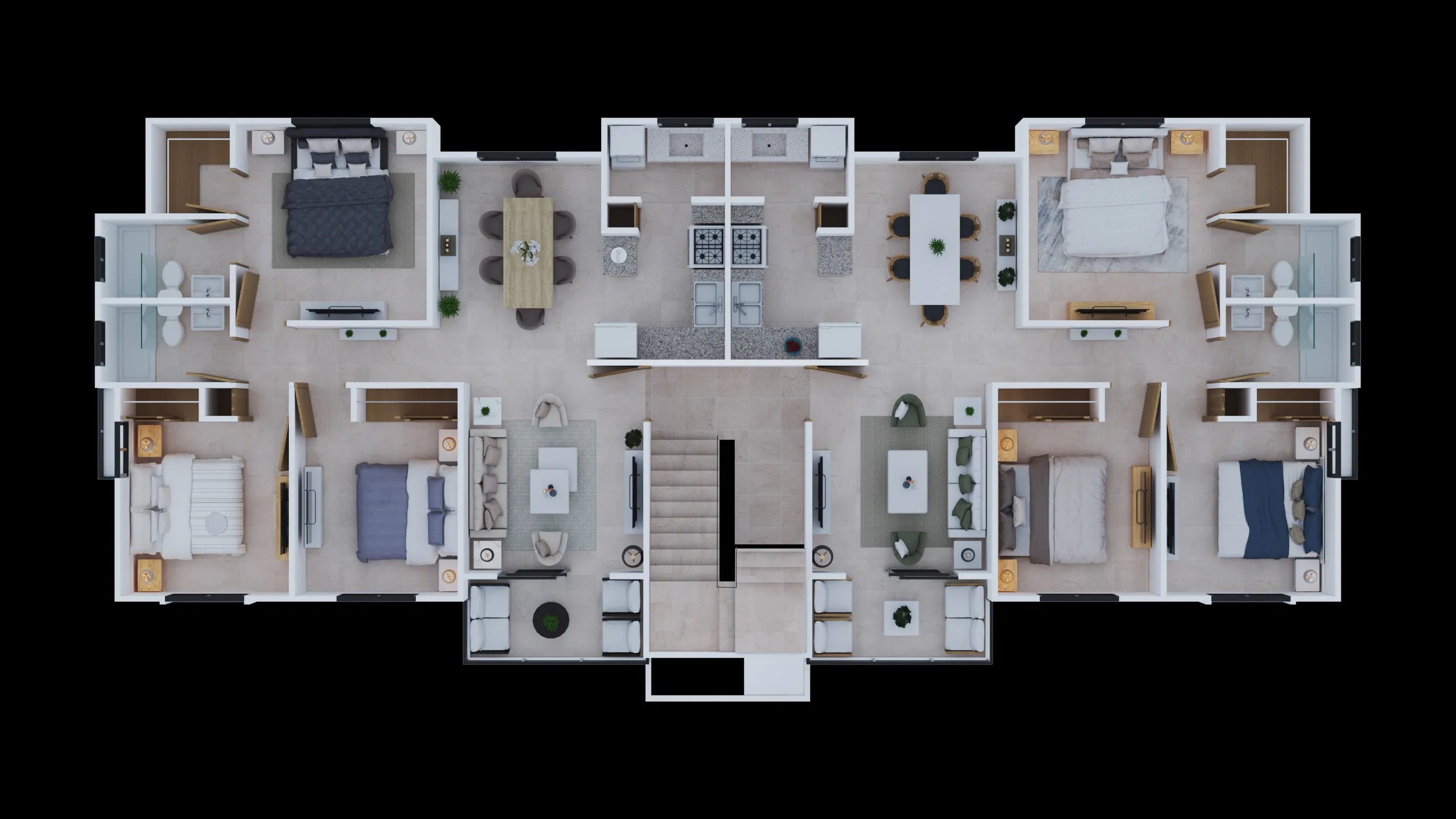 Incluyen acceso vía escalera privada desde el apartamento al 5to nivel del edificio donde cuenta con un estudio interior de aprox. 16m2 más una terraza destechada de aprox. 38m2 con preinstalación para un jacuzzi. Fantásticas vistas y brisas desde estos apartamentos y desde la terraza.