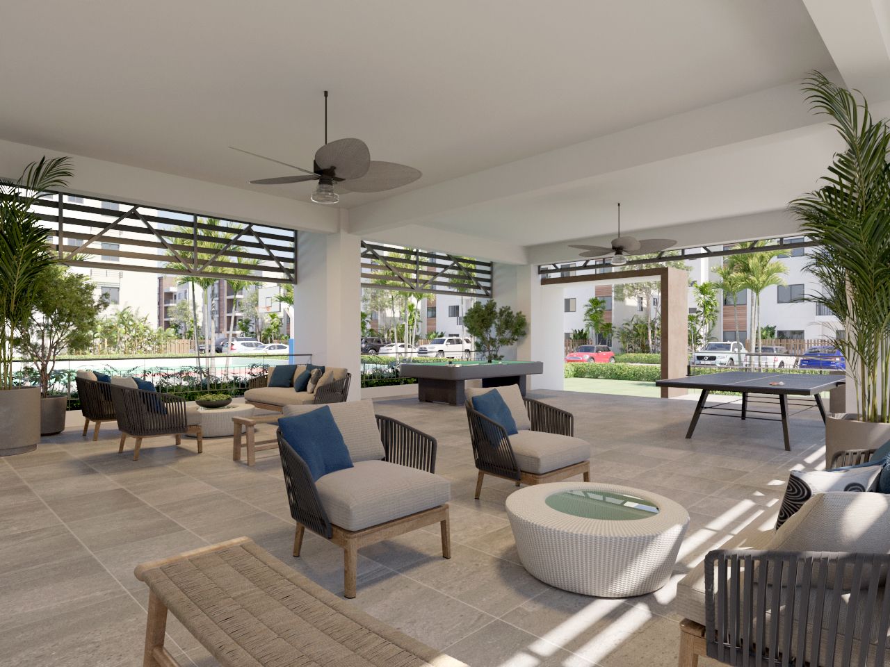 - Área para eventos en el primer nivel, techada y con acceso directo a los juegos de niños y áreas verdes.